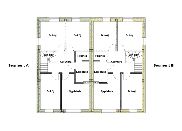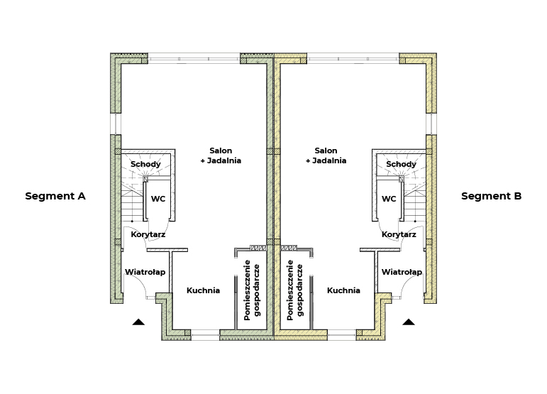 Oddajemy do Państwa dyspozycji niskiej zabudowy segment A oraz segment B. Każdy z nich posiada wydzieloną na parterze część dzienną i nocną na piętrze o łącznej powierzchni 115,8 m2, a także ogród i miejsce parkingowe.